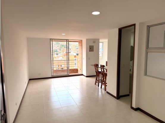 Apartamento en arriendo en La Floresta, Medellín. Consta de 2 habitaciones, la alcoba principal cuenta con baño, baño social, cocina integral abierta con barra estilo americano, red de gas, zona de ropas, sala comedor, estudio, balcón y parqueadero para moto. El edificio cuenta con ascensor.