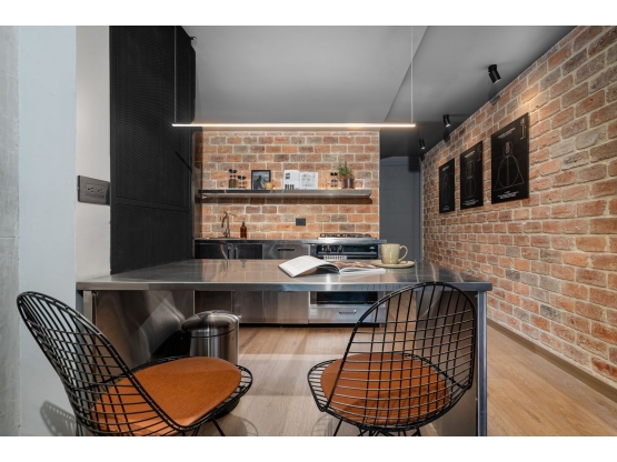 Apartamento Amoblado en Arriendo en El Poblado, Medellín. Consta de 1 habitación, 1.5 baños, cocina integral con barra estilo americano, red de gas, sala comedor, balcón sin poniente con vista a reserva natural y parqueadero.
