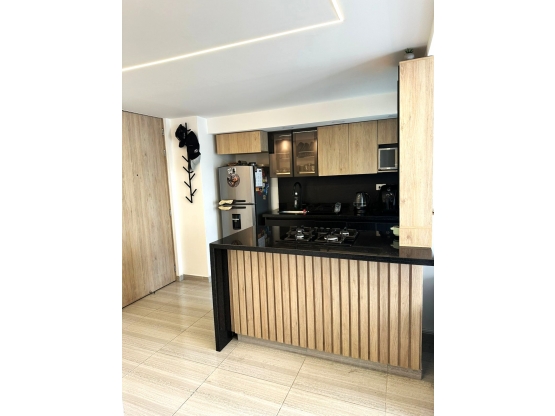Apartamento en venta en La Estrella sector La Aldea.Cuenta con hermosos acabados, 2 habitaciones más estudio o tercera habitación, la alcoba principal cuenta con baño, baño social, cocina integral con barra estilo americano, red de gas, zona de ropas, sala comedor, balcón vista a la reserva y parqueadero común para residentes del Conjunto.