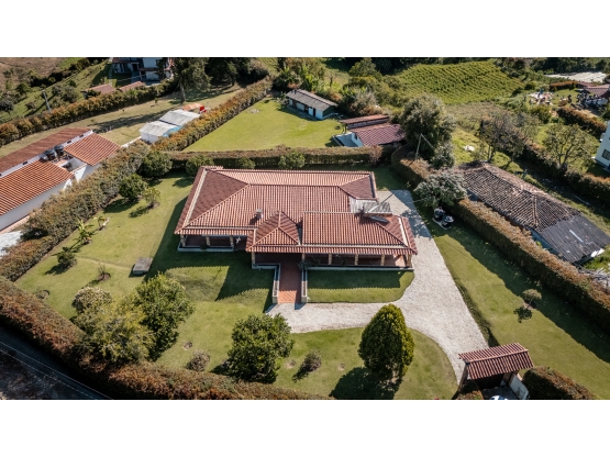 Finca en venta en Marinilla, Antioquia. Cuenta con un lote de 3.000 m2 y un área construida de 320 m2, 5 alcobas, 4 baños, garaje para 2 vehículos, cocina integral, salón chimenea, comedor, patio interior, red de gas e internet, árboles frutales, caballeriza para 4 caballos y cuarto útil para caballerizas.